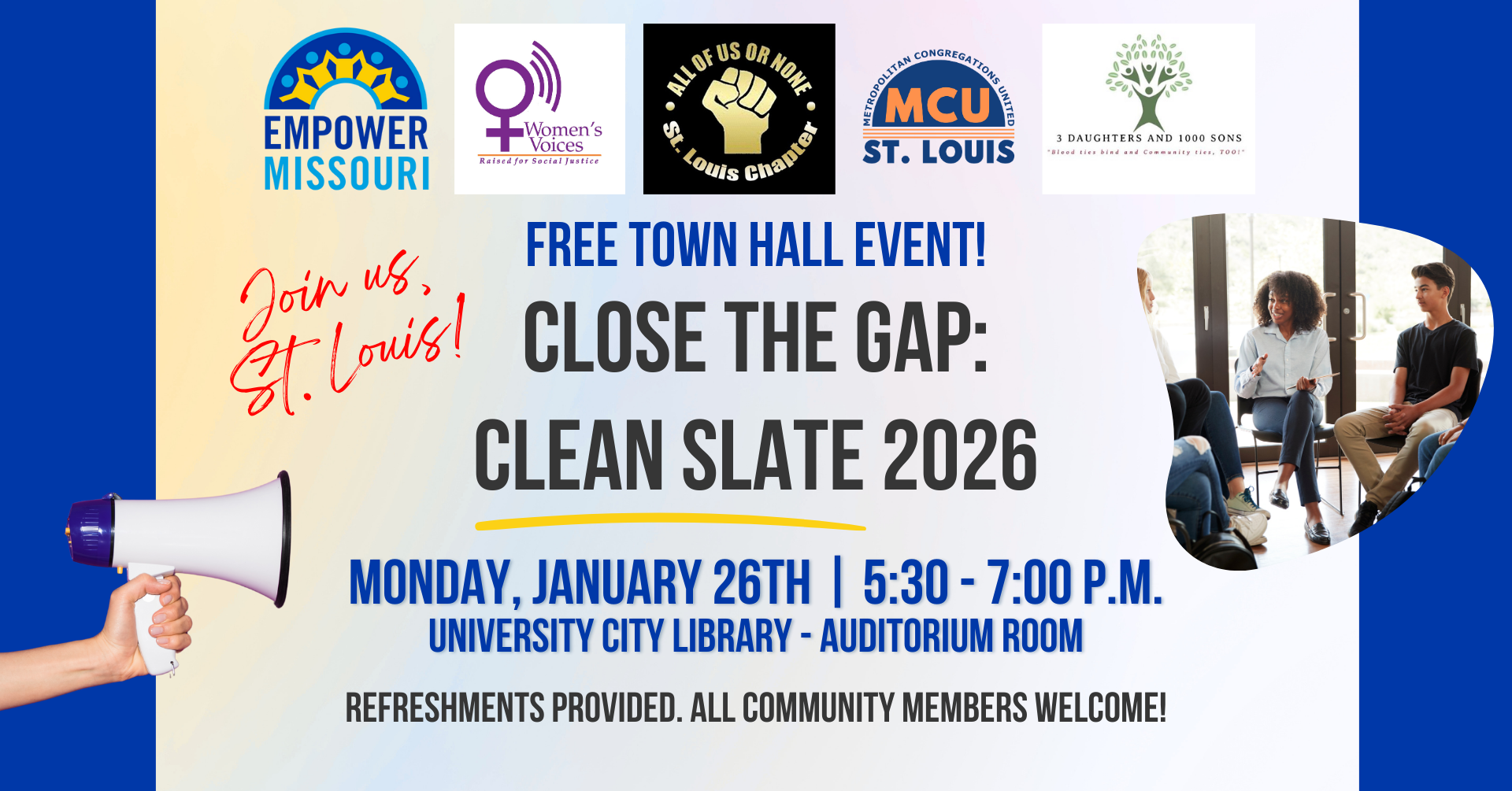 Join community members and advocates from across the city for an urgent Clean Slate town hall. This legislative session we are closer than ever to passing clean slate legislation; a policy that will automatically seal eligible criminal records and open doors to jobs, housing, education and real second chances for thousands of people.